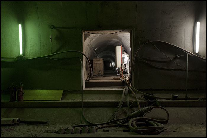 The 57 km long tunnel in this gallery are a double world record and allow you to trace a direct path into the mountain group of the Gotthard and Lukmanier, between the cities of Sedrun and Faido, an idea born from the postwar period and now you are being realized.