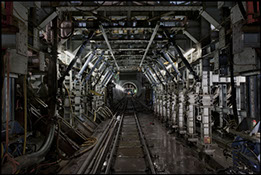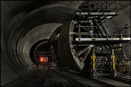 The 57 km long tunnel in this gallery are a double world record and allow you to trace a direct path into the mountain group of the Gotthard and Lukmanier, between the cities of Sedrun and Faido, an idea born from the postwar period and now you are being realized.